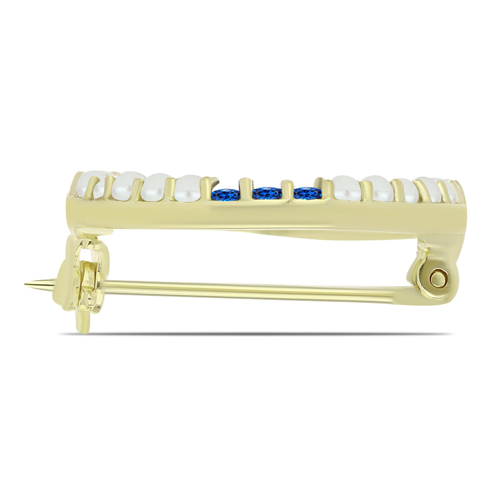 Goldplattierte Silberbrosche mit weißer Süßwasserperle und australischem blauem Saphir