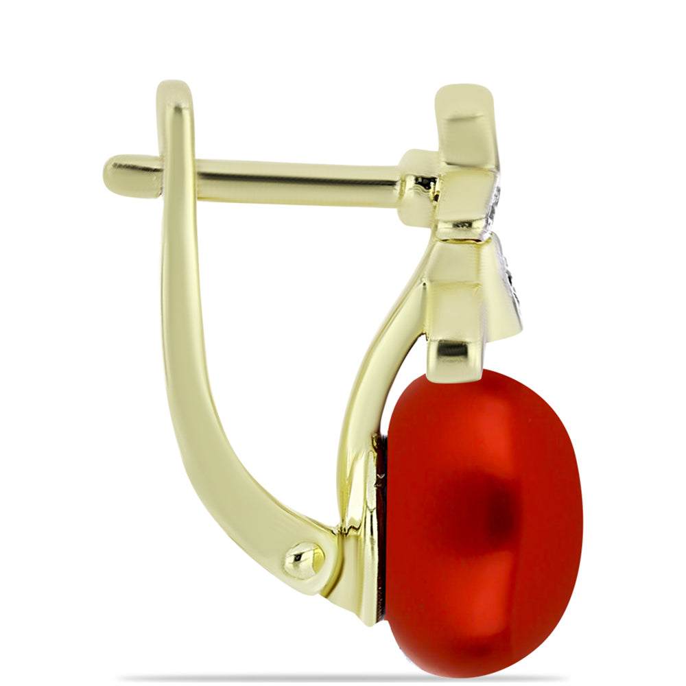 Goldplattierte Silberohrringe mit roter Süßwasserperle und weißem Topas