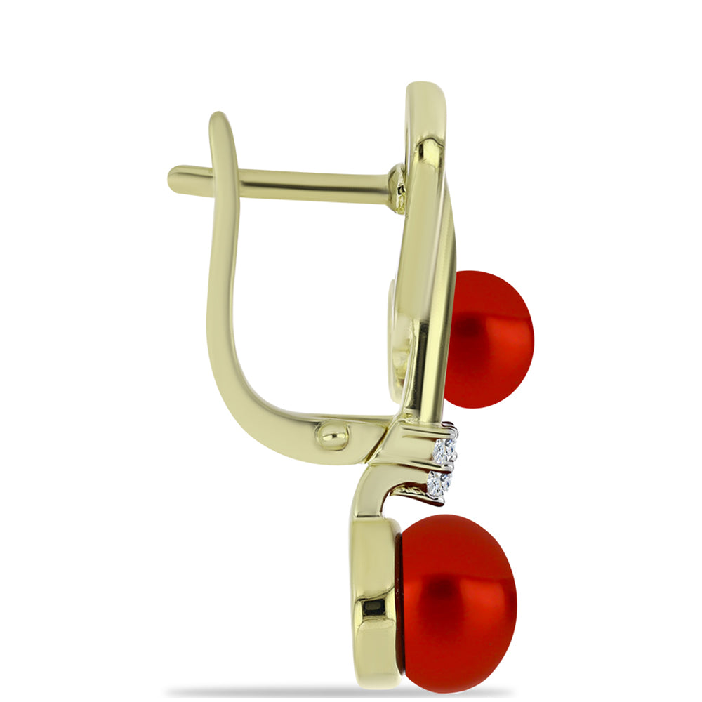 Goldplattierte Silberohrringe mit roter Süßwasserperle und weißem Topas