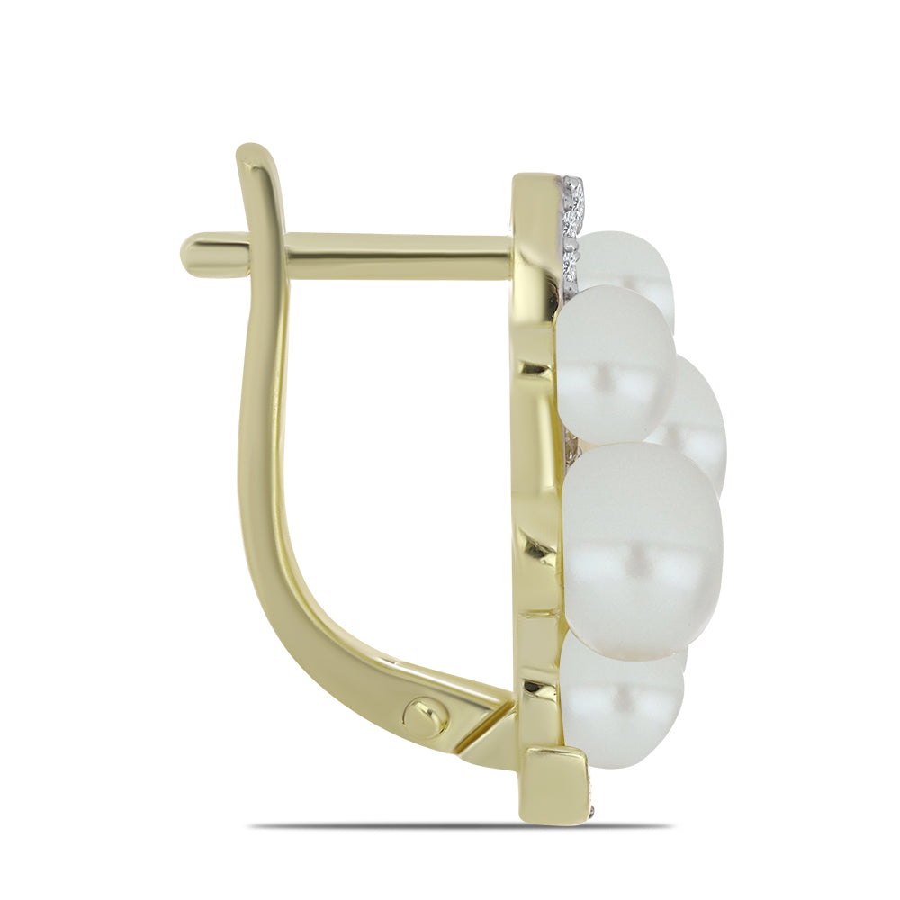 Goldplattierte Silberohrringe mit weißer Süßwasserperle und weißem Topas