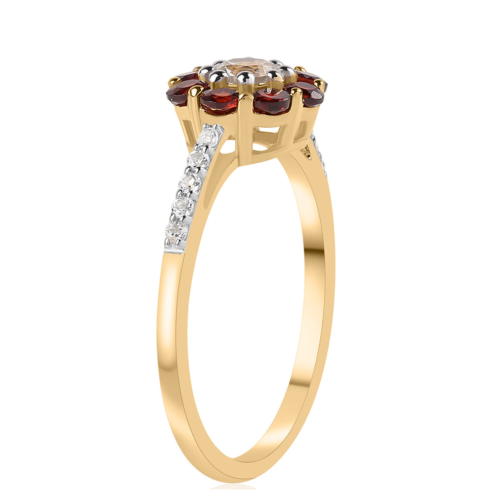 Goldplattierter Silberring mit Barton Granat und weißem Topas