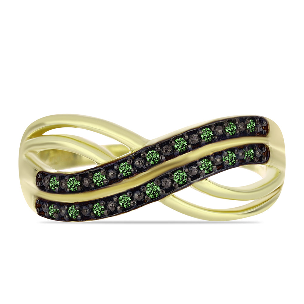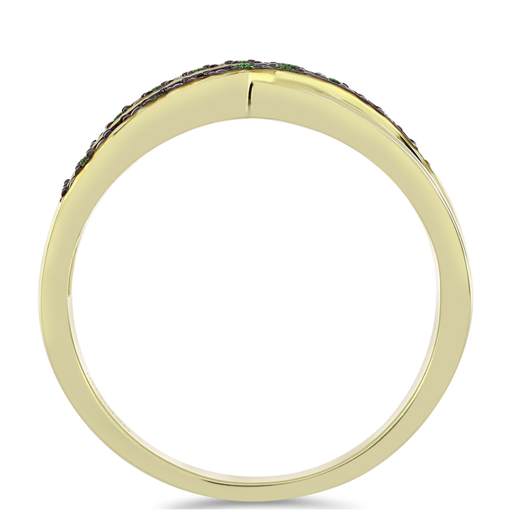 Goldplattierter Silberring mit grünem Diamant Karatgewicht insgesamt ca. 0.13 ct. Edelmetallgewicht ca. 3.75 g. Artikelnummer: Y60989 Abmessungen: 9.30 mm x 21.60 mm