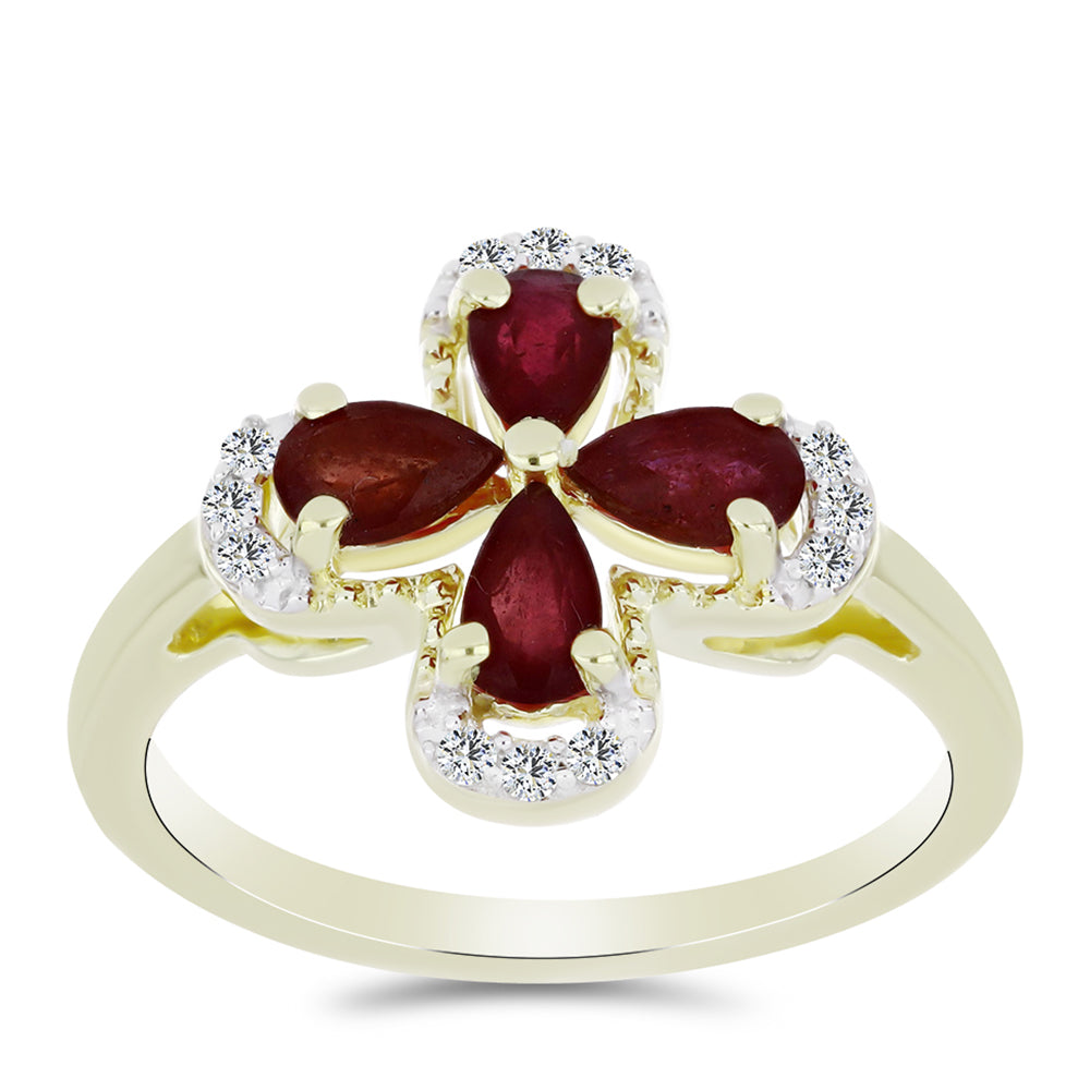 Goldplattierter Silberring mit Rubin aus Madagaskar und weißem Topas Karatgewicht insgesamt ca. 1.41 ct. Edelmetallgewicht ca. 2.97 g. Artikelnummer: Y60366 Abmessungen: 14.40 mm x 22.40 mm