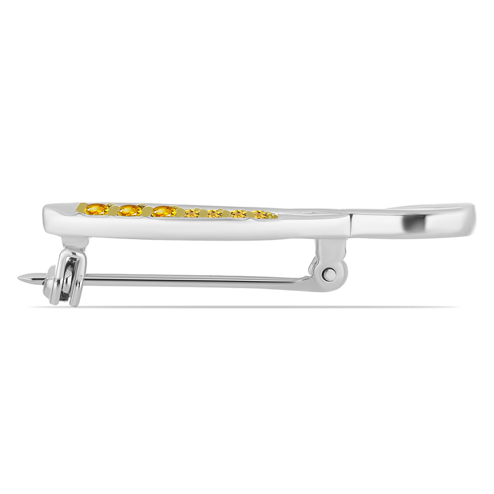 Silberbrosche mit Zitrin aus dem Ural Karatgewicht insgesamt ca. 0.19 ct. Edelmetallgewicht ca. 2.44 g. Artikelnummer: Y60573 Abmessungen: 9.65 mm x 32.35 mm