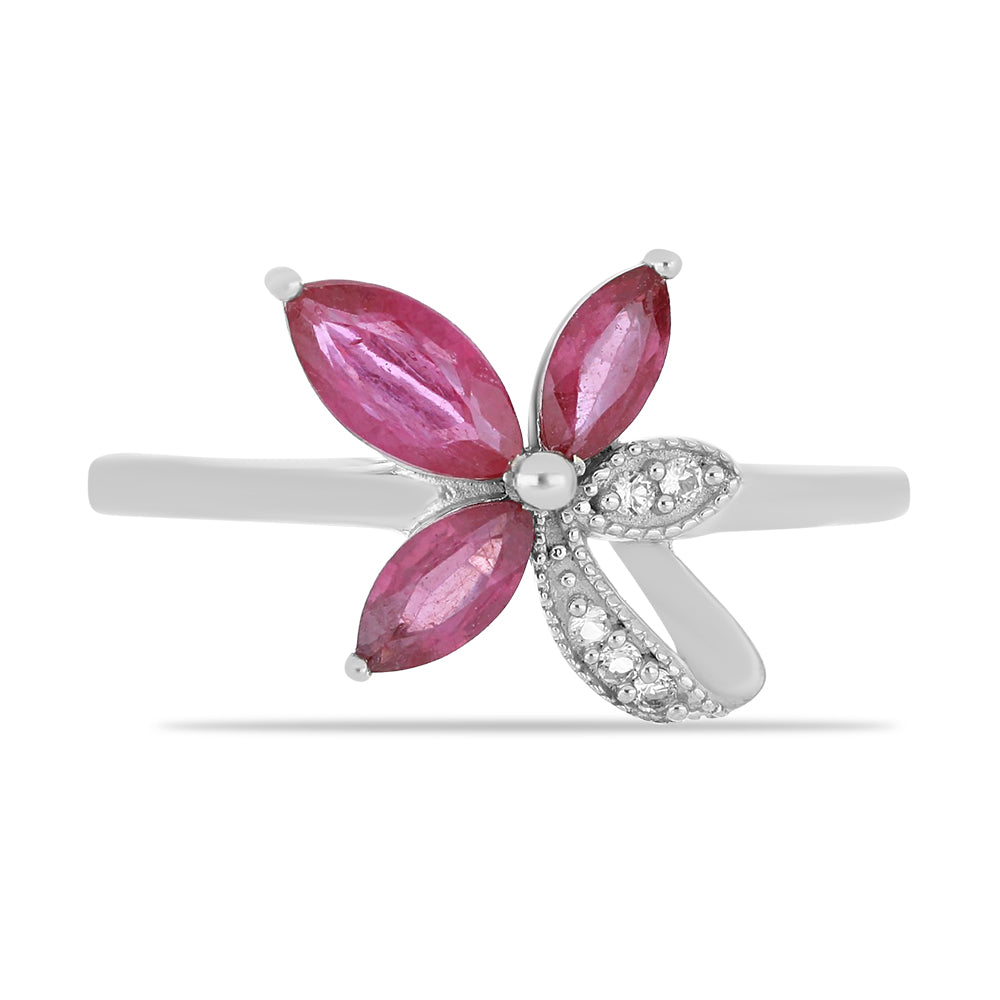 Silberring mit Rubin aus Madagaskar und weißem Topas Karatgewicht insgesamt ca. 1.78 ct. Edelmetallgewicht ca. 1.96 g. Artikelnummer: Y53241 Abmessungen: 10.10 mm x 22.50 mm