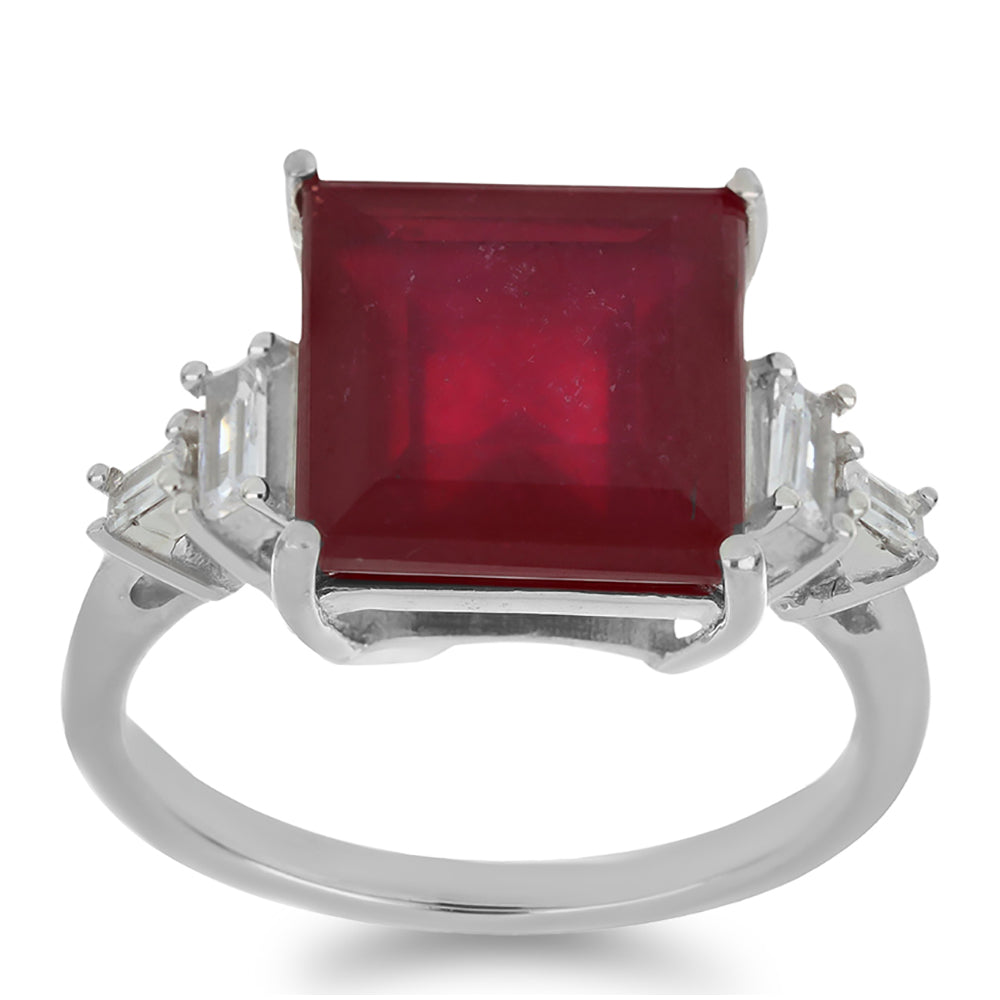 Silberring mit Rubin aus Madagaskar und weißem Zirkon Karatgewicht insgesamt ca. 8.96 ct. Edelmetallgewicht ca. 5.12 g. Artikelnummer: Y54713 Abmessungen: 12.90 mm x 22.60 mm