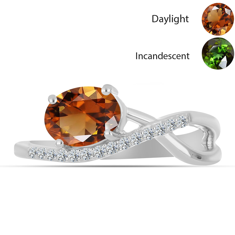 Silberring mit zertifiziertem laborgezüchteten Zultanit aus Anatolien und weißem Topas