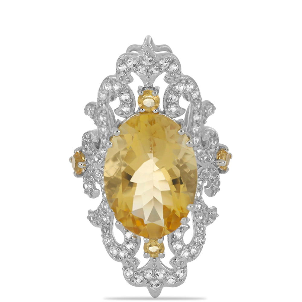 Silberring mit Zitrin aus dem Ural und weißem Topas Karatgewicht insgesamt ca. 11.48 ct. Edelmetallgewicht ca. 8.98 g. Artikelnummer: Y55017 Abmessungen: 37.10 mm x 26.10 mm