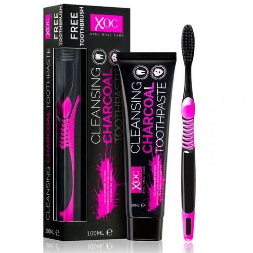 XOC Aufhellende Zahnpasta mit Aktivkohle mit Zahnbürste als GESCHENK